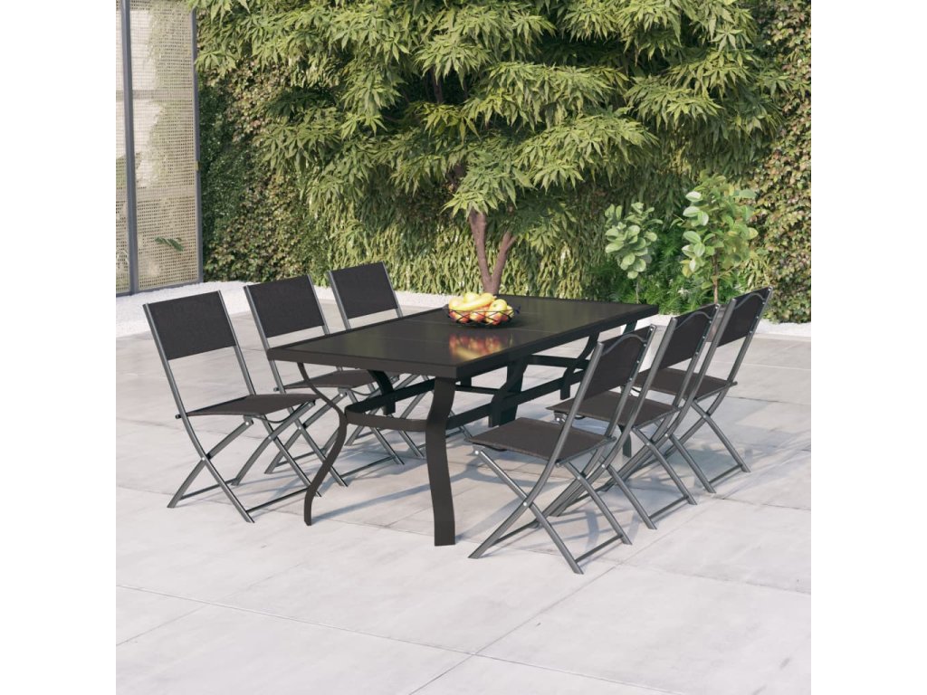 7dílný zahradní jídelní set šedočerný 3102919