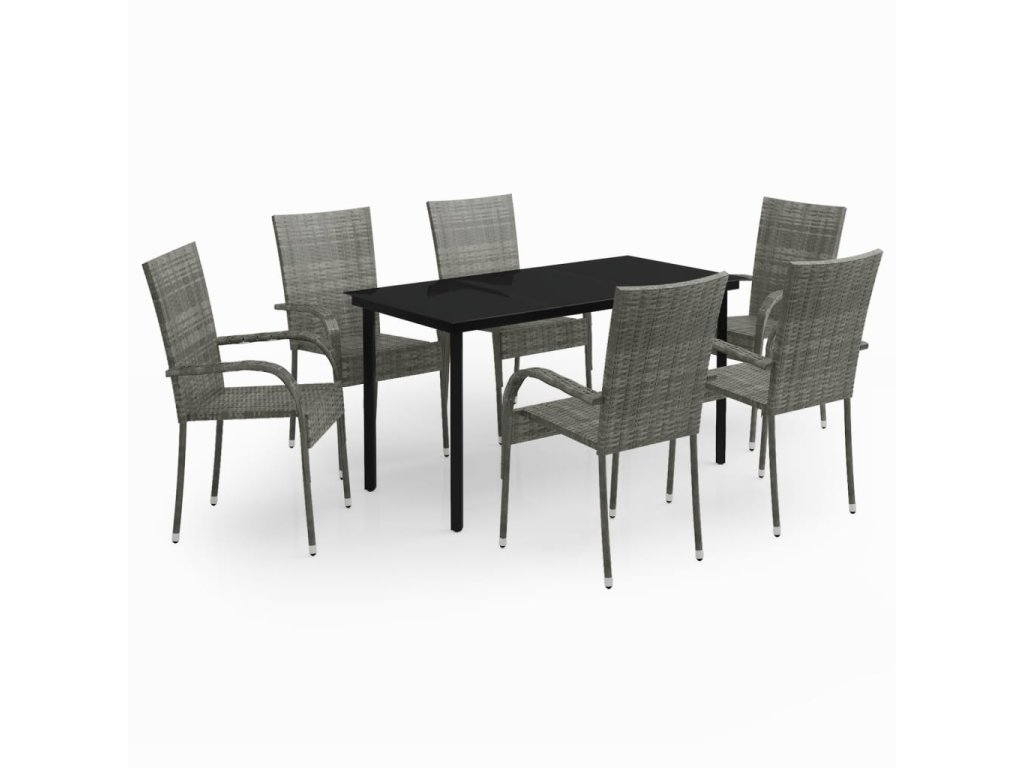 7dílný zahradní jídelní set šedý a černý 3099392