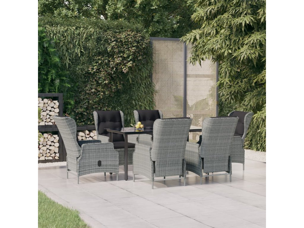 7dílný zahradní jídelní set světle šedý polyratan 3156795