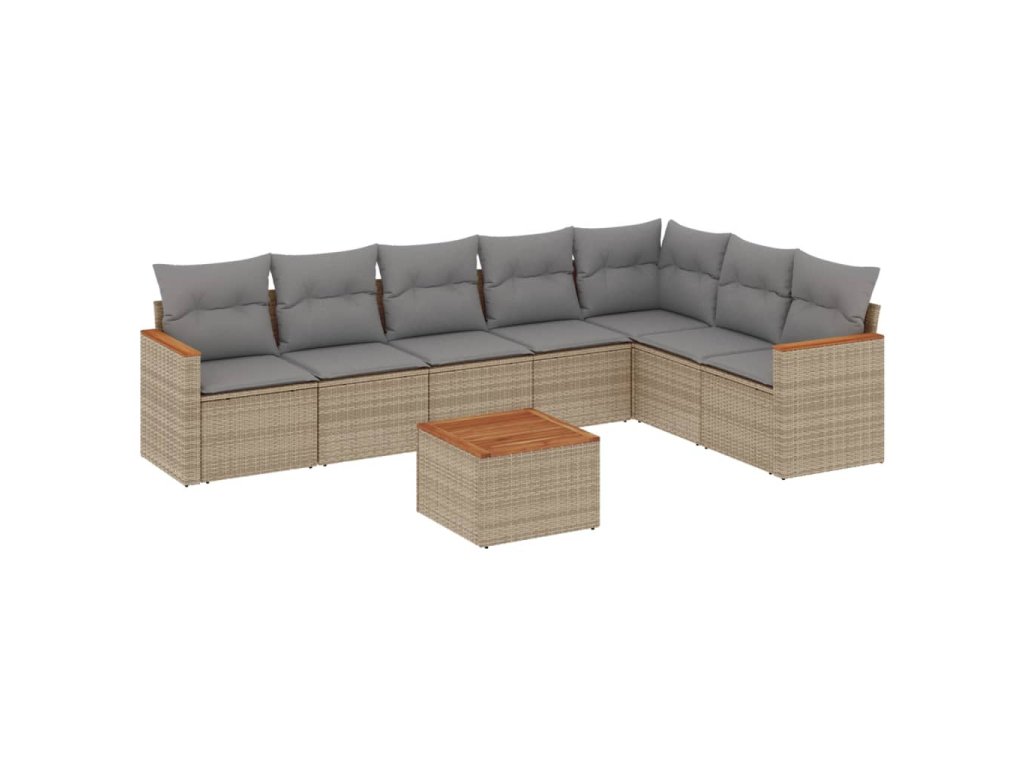 8dílná zahradní sedací souprava a podušky mix béžové polyratan 3226038