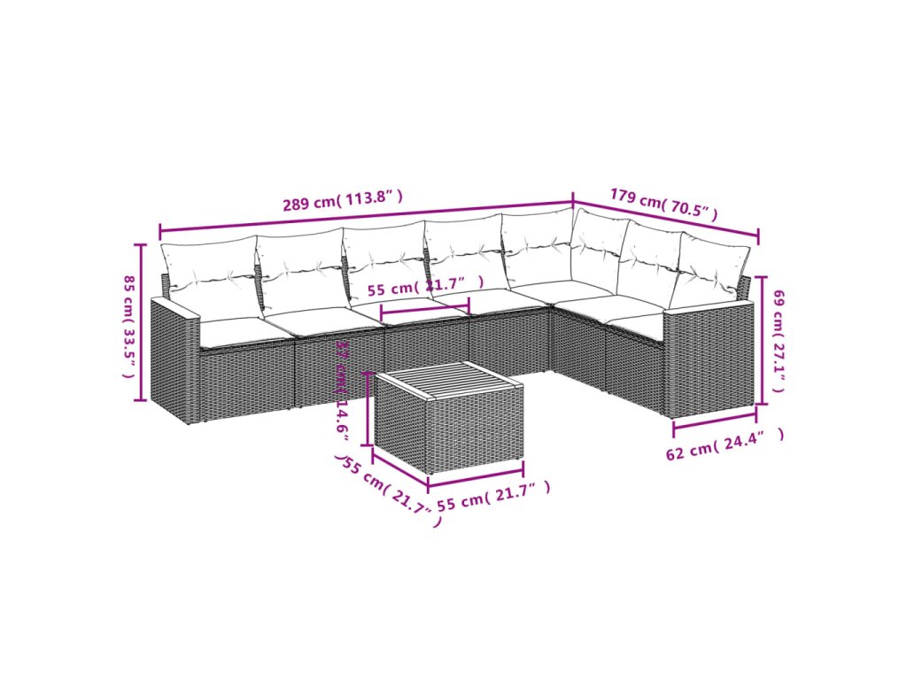 Tato zahradní sedací souprava je dokonalým doplňkem vaší zahrady, terasy nebo dvorku a poskytne vám pohodlné a příjemné místo, kde si můžete povídat s rodinou a přáteli nebo jen tak odpočívat a užívat si pobyt venku.