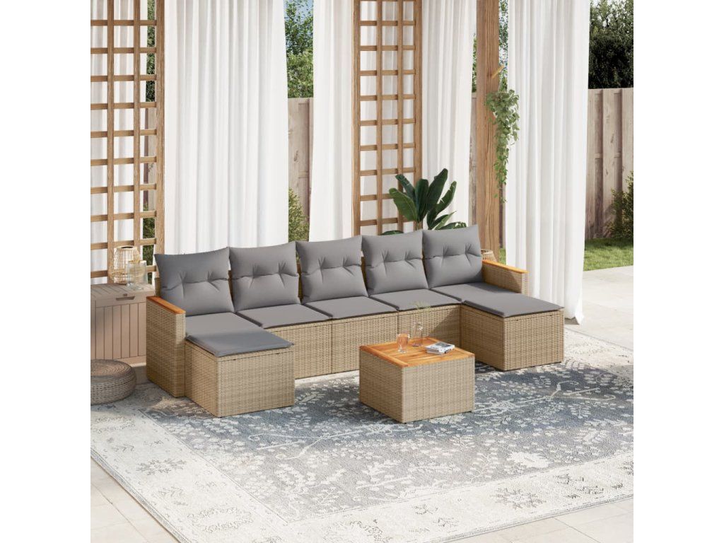 8dílná zahradní sedací souprava a podušky mix béžové polyratan 3226241