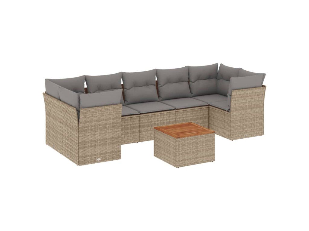 8dílná zahradní sedací souprava a podušky mix béžové polyratan 3255842