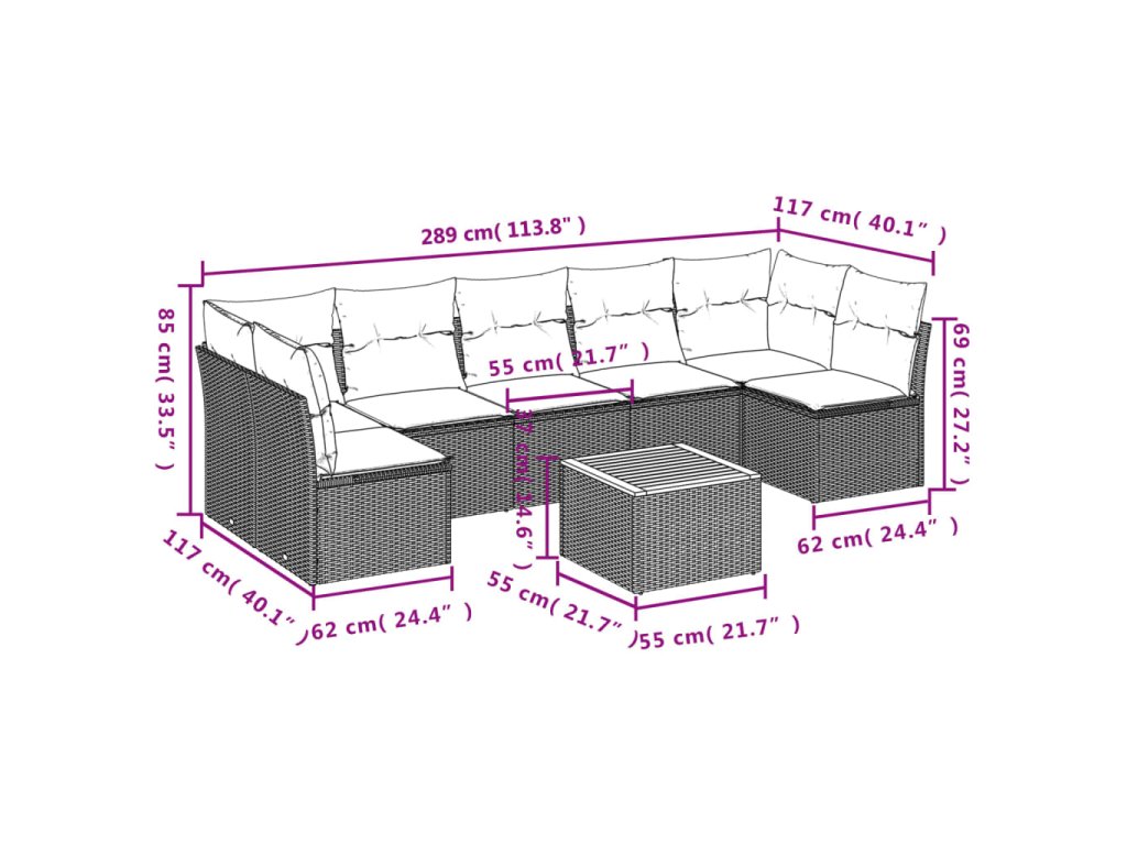 Tato zahradní sedací souprava je dokonalým doplňkem vaší zahrady, terasy nebo dvorku a poskytne vám pohodlné a příjemné místo, kde si můžete povídat s rodinou a přáteli nebo jen tak odpočívat a užívat si pobyt venku.