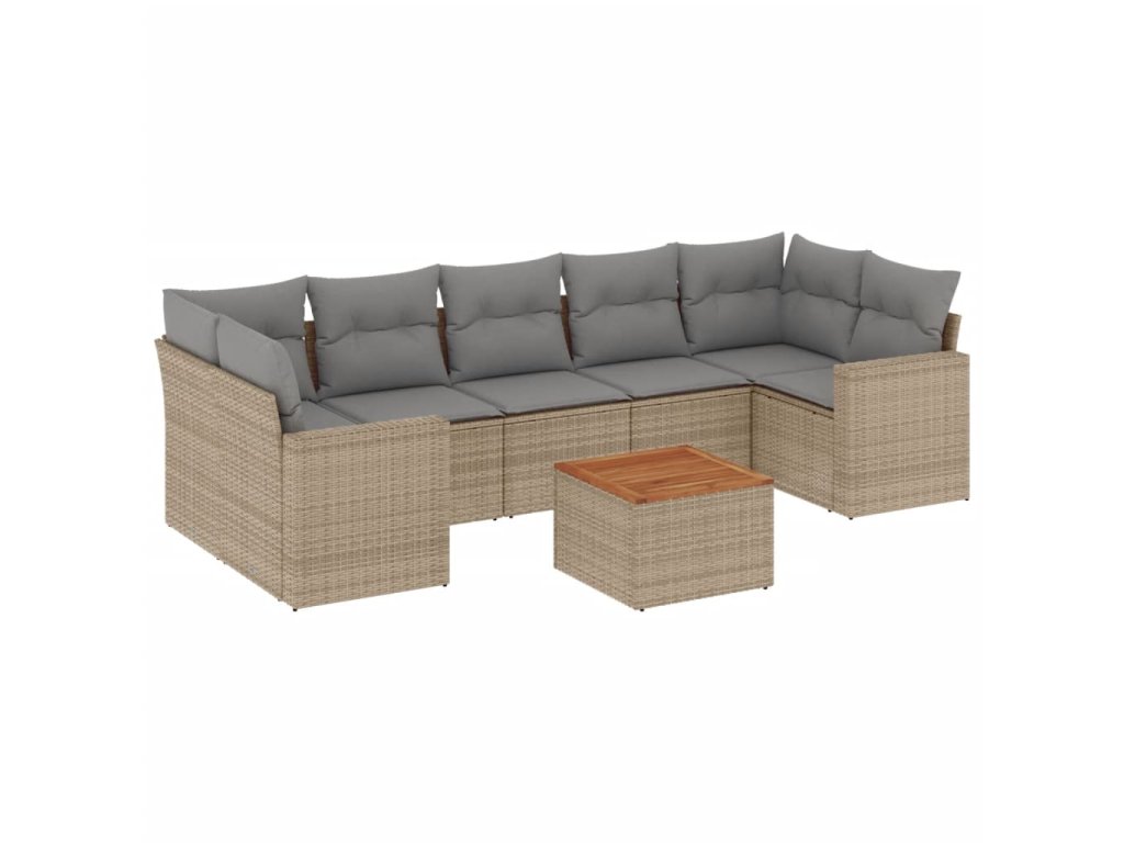 8dílná zahradní sedací souprava a podušky mix béžové polyratan 3256367