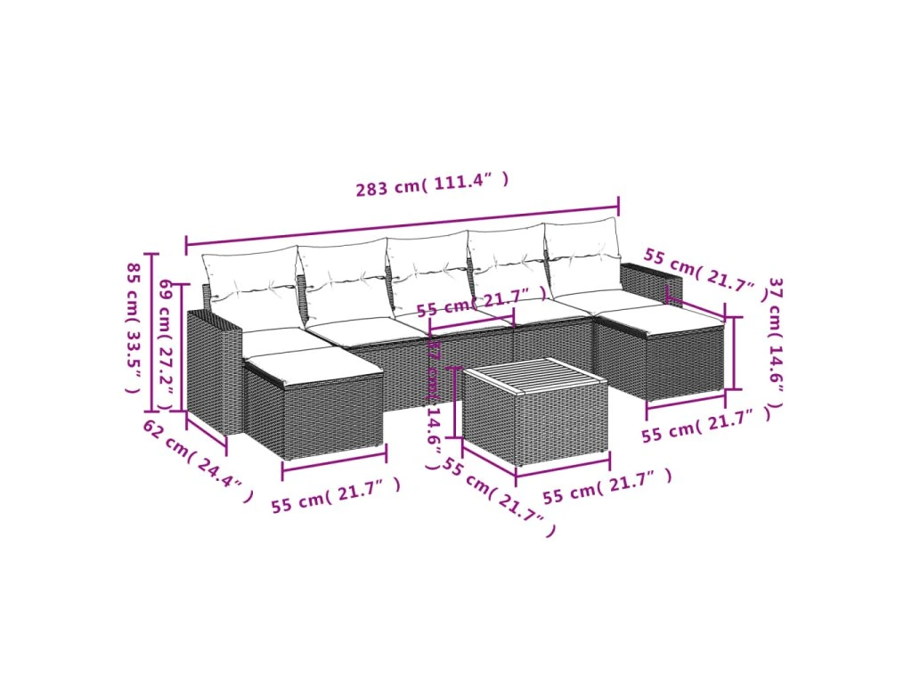 Tato zahradní sedací souprava je dokonalým doplňkem vaší zahrady, terasy nebo dvorku a poskytne vám pohodlné a příjemné místo, kde si můžete povídat s rodinou a přáteli nebo jen tak odpočívat a užívat si pobyt venku.