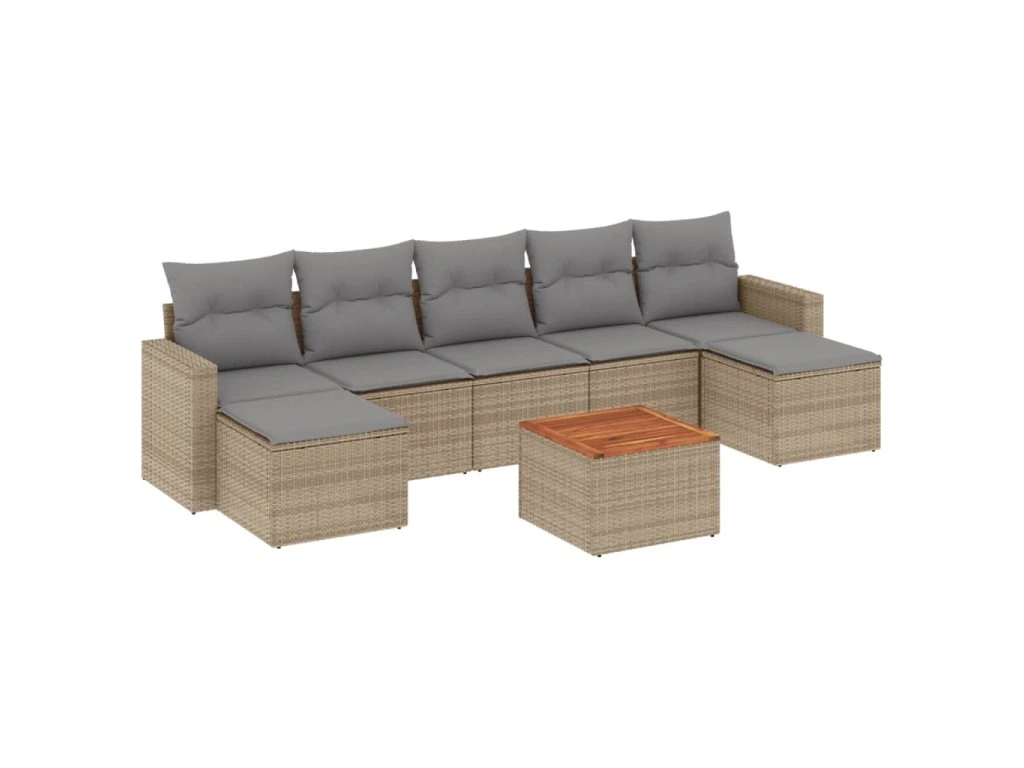 8dílná zahradní sedací souprava a podušky mix béžové polyratan 3256584