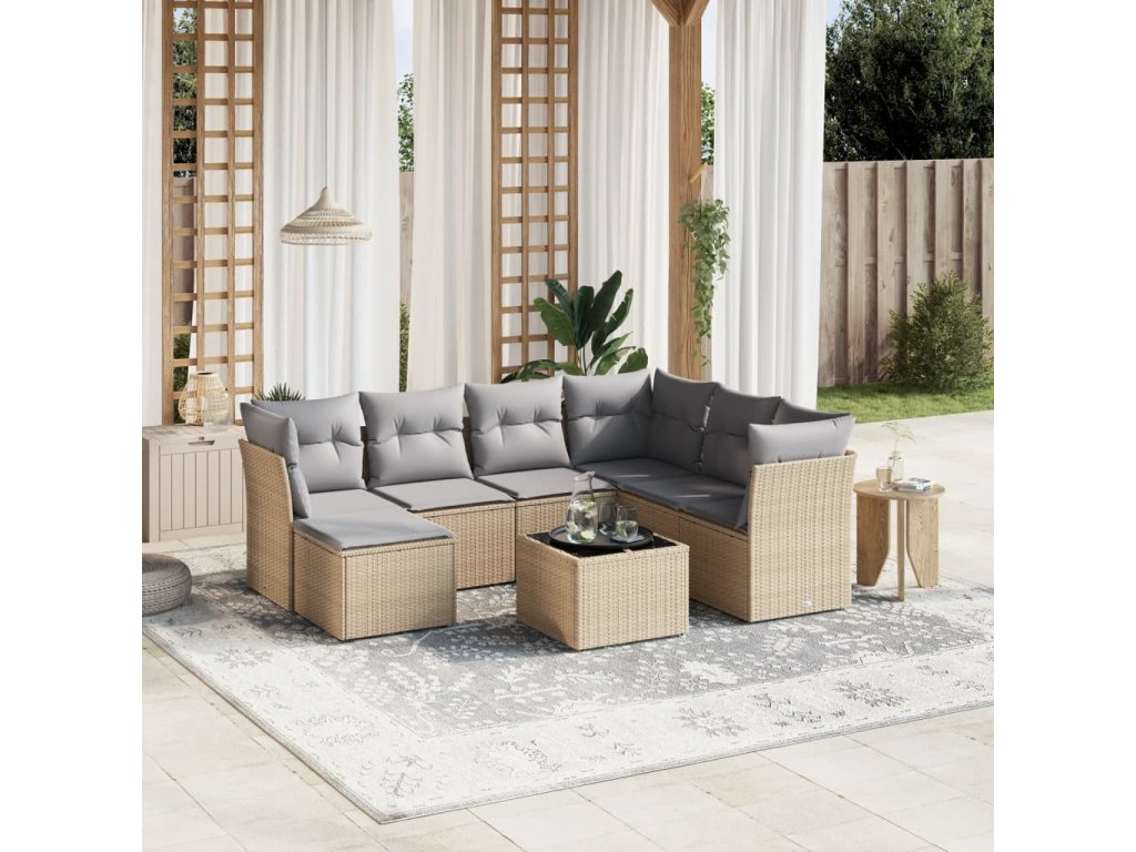 8dílná zahradní sedací souprava a podušky mix béžové polyratan 3263225