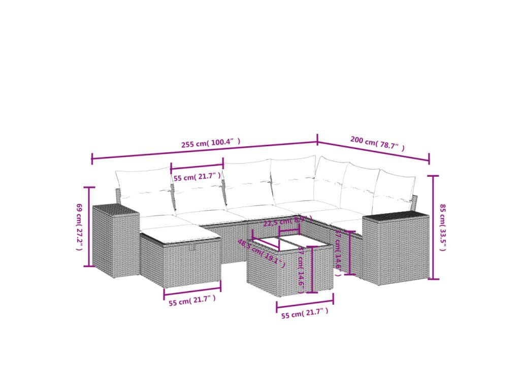 8dílná zahradní sedací souprava a podušky mix béžové polyratan 3264465