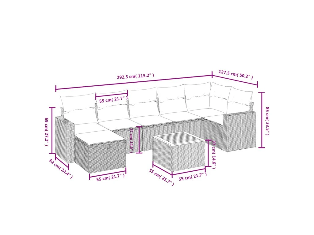 Tato zahradní sedací souprava je dokonalým doplňkem vaší zahrady, terasy nebo dvorku a poskytne vám pohodlné a příjemné místo, kde si můžete povídat s rodinou a přáteli nebo jen tak odpočívat a užívat si pobyt venku.