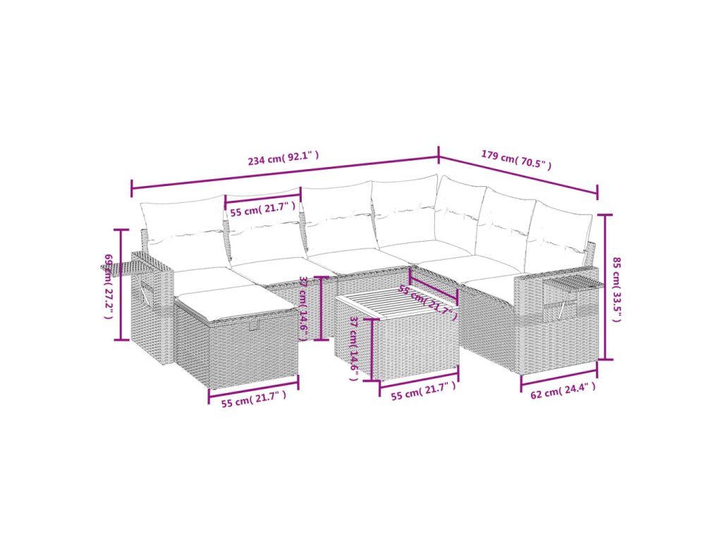 8dílná zahradní sedací souprava a podušky mix béžové polyratan 3264965