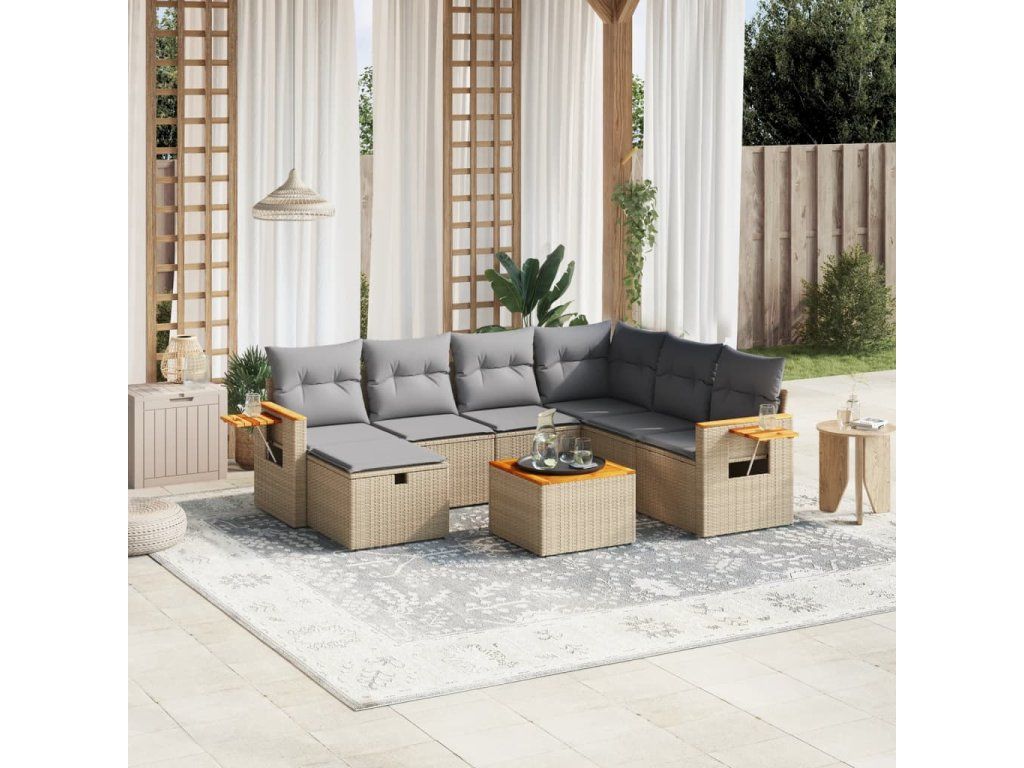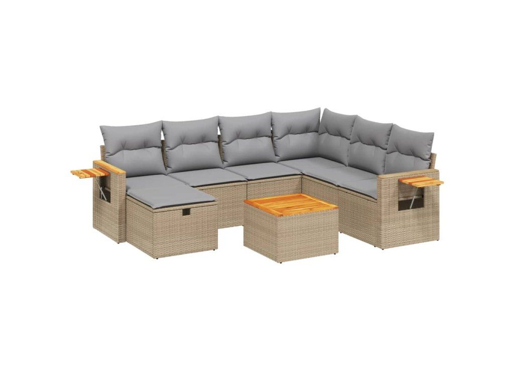 8dílná zahradní sedací souprava a podušky mix béžové polyratan 3265553