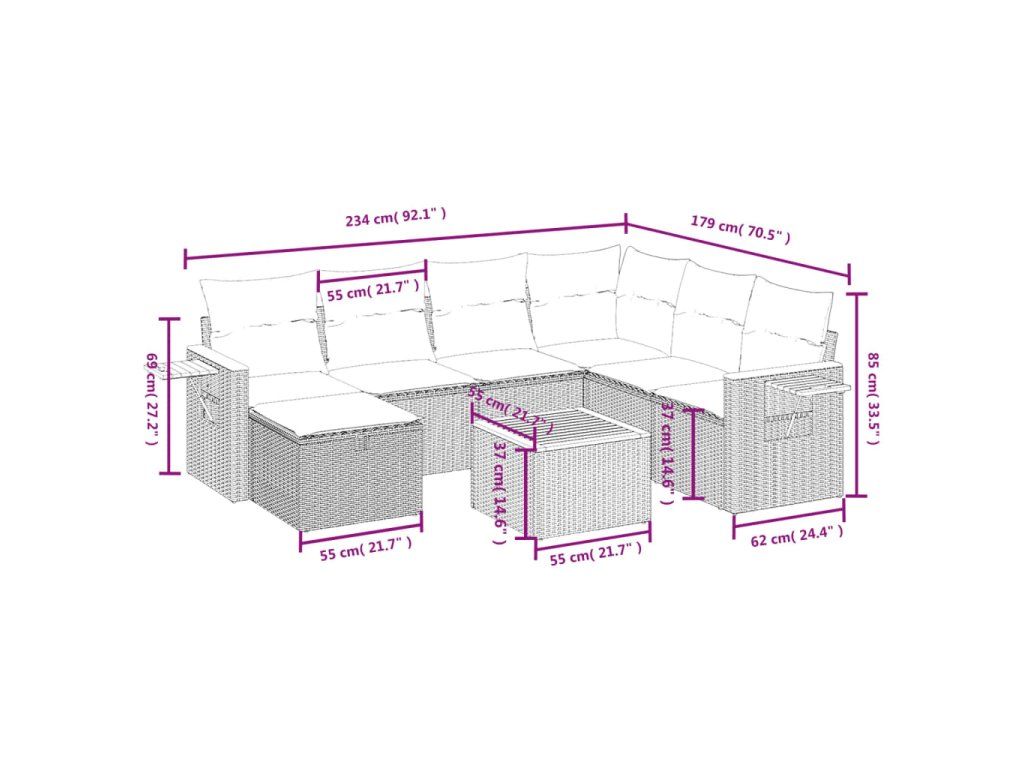 Tato zahradní sedací souprava je dokonalým doplňkem vaší zahrady, terasy nebo dvorku a poskytne vám pohodlné a příjemné místo, kde si můžete povídat s rodinou a přáteli nebo jen tak odpočívat a užívat si pobyt venku.