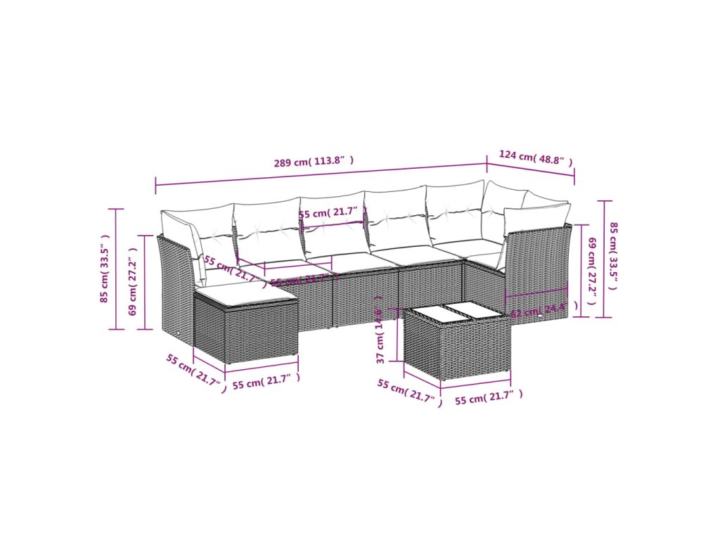 8dílná zahradní sedací souprava a podušky světle šedá polyratan 3217982