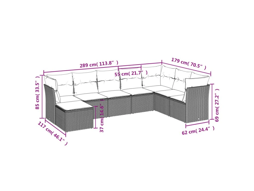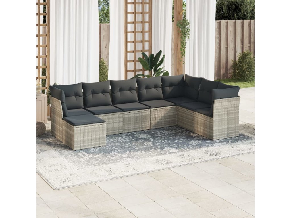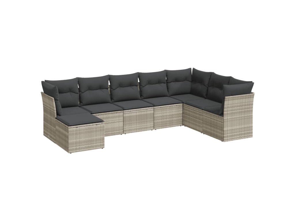 8dílná zahradní sedací souprava a podušky světle šedá polyratan 3218052