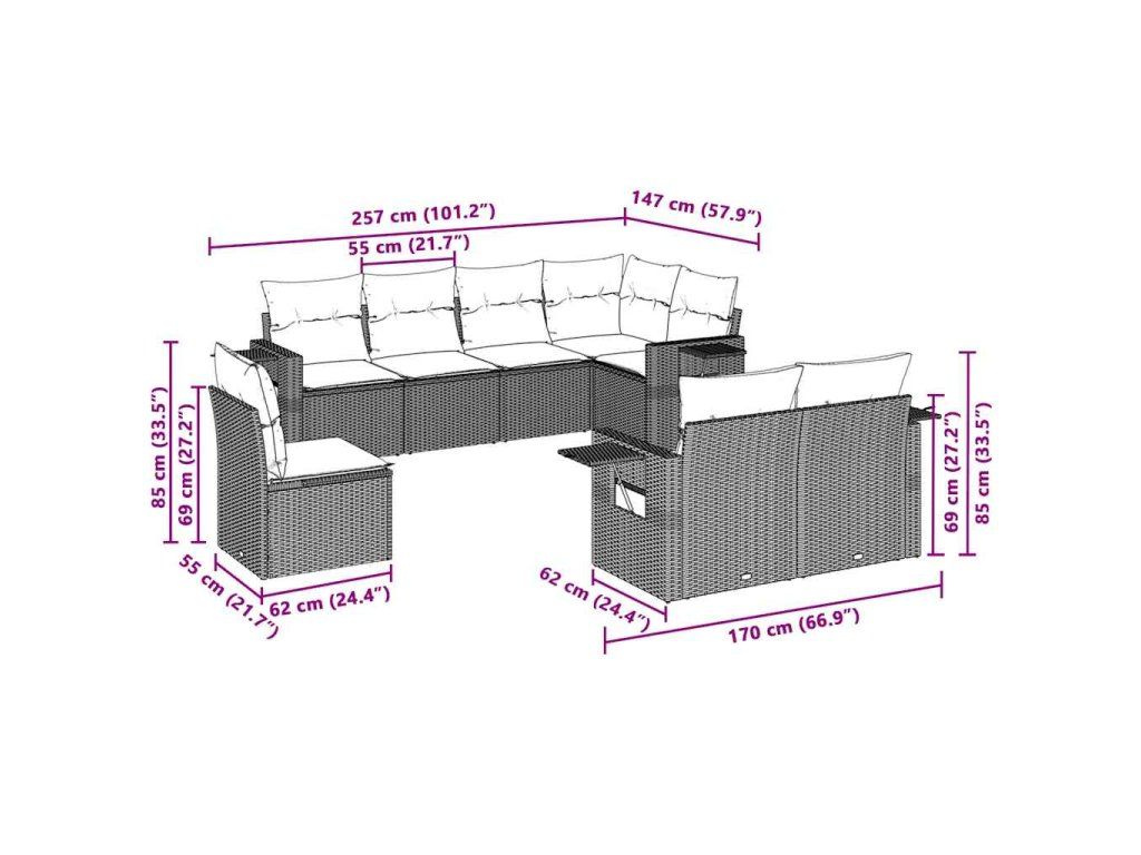 8dílná zahradní sedací souprava a podušky světle šedá polyratan 3220441