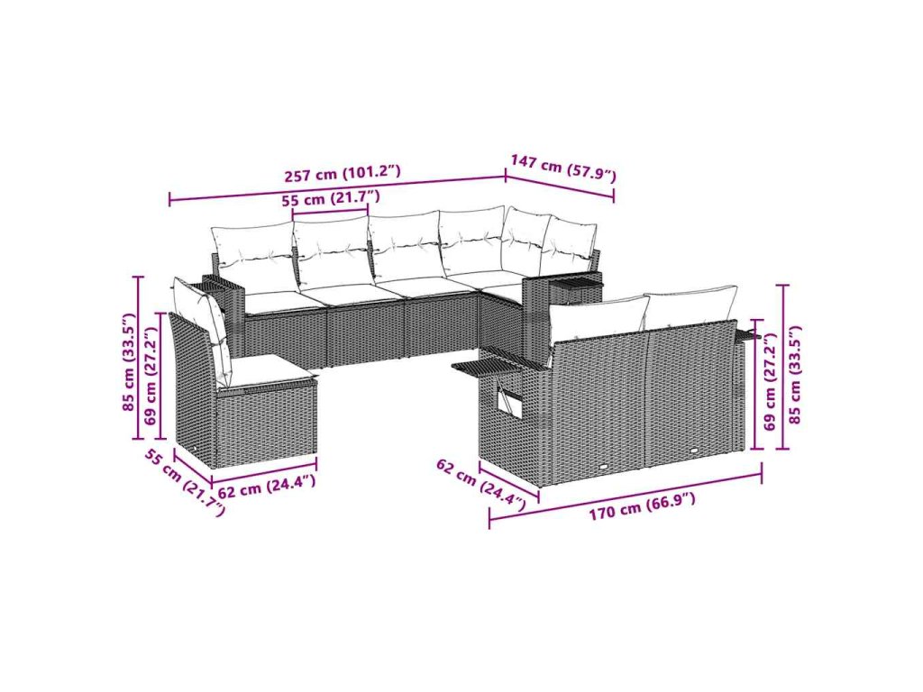 Tato zahradní sedací souprava je dokonalým doplňkem vaší zahrady, terasy nebo dvorku a poskytne vám pohodlné a příjemné místo, kde si můžete povídat s rodinou a přáteli nebo jen tak odpočívat a užívat si pobyt venku.