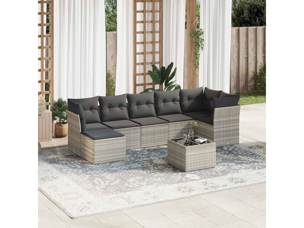 8dílná zahradní sedací souprava a podušky světle šedá polyratan 3249821