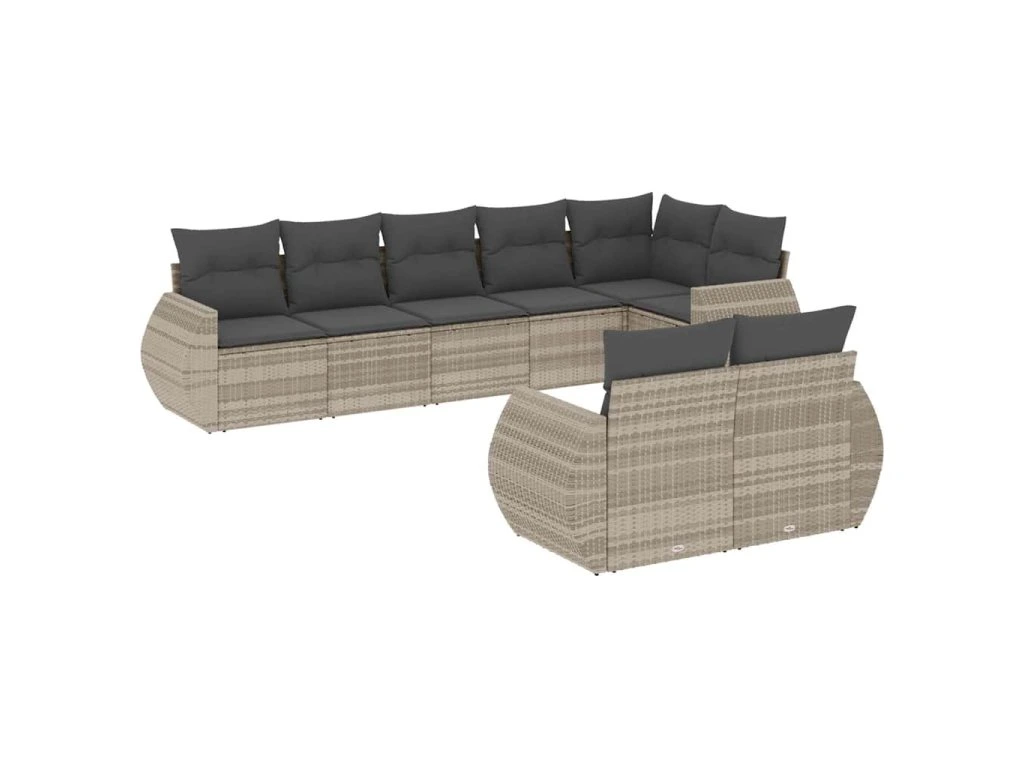 8dílná zahradní sedací souprava a podušky světle šedá polyratan 3253959