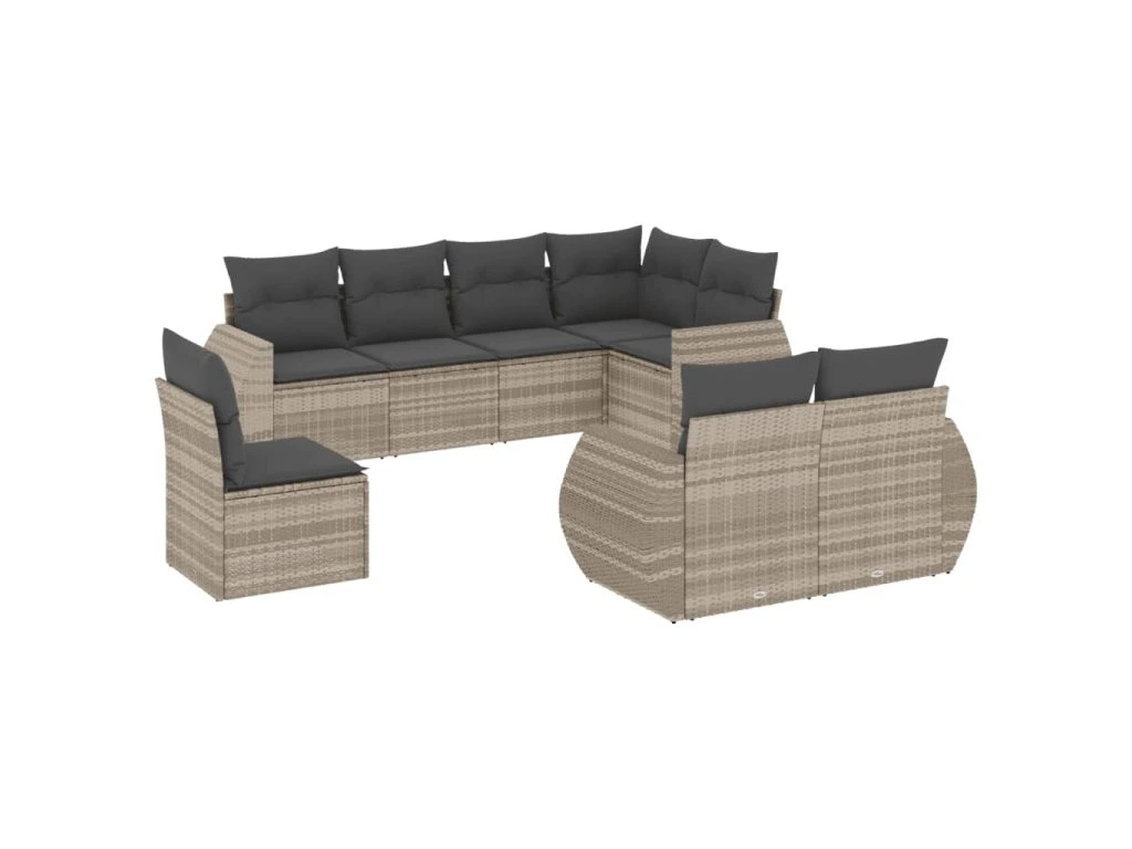 8dílná zahradní sedací souprava a podušky světle šedá polyratan 3253979