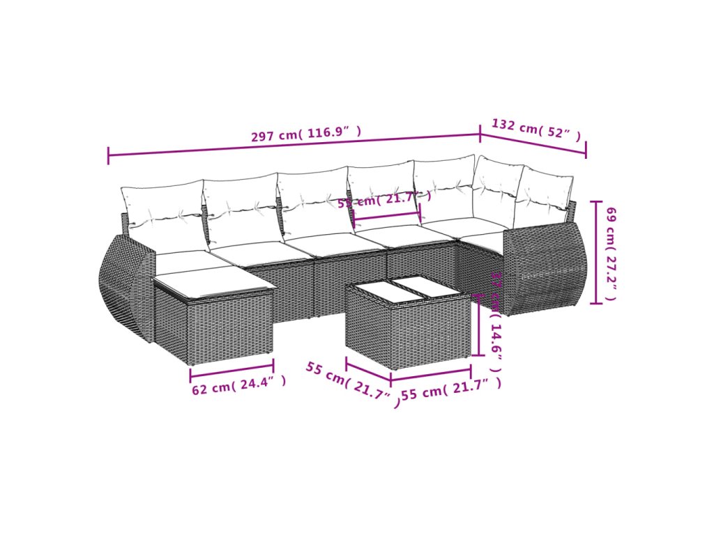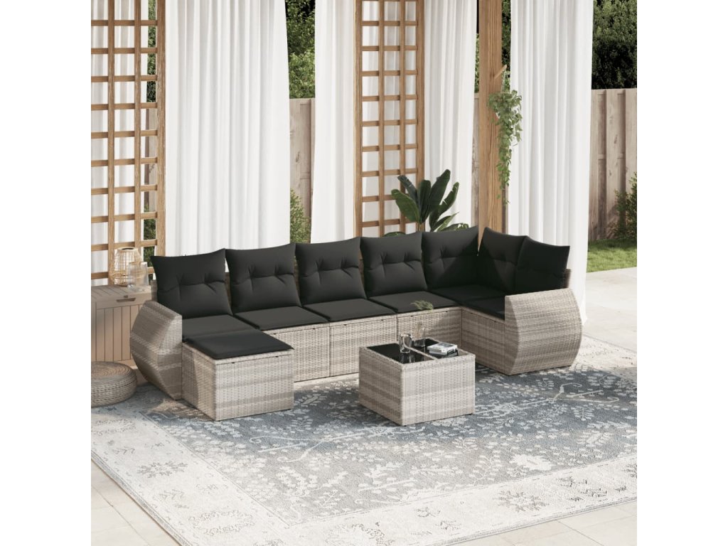 8dílná zahradní sedací souprava a podušky světle šedá polyratan 3254029