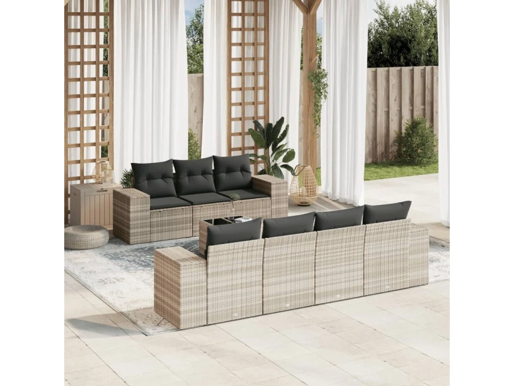 8dílná zahradní sedací souprava a podušky světle šedá polyratan 3254669