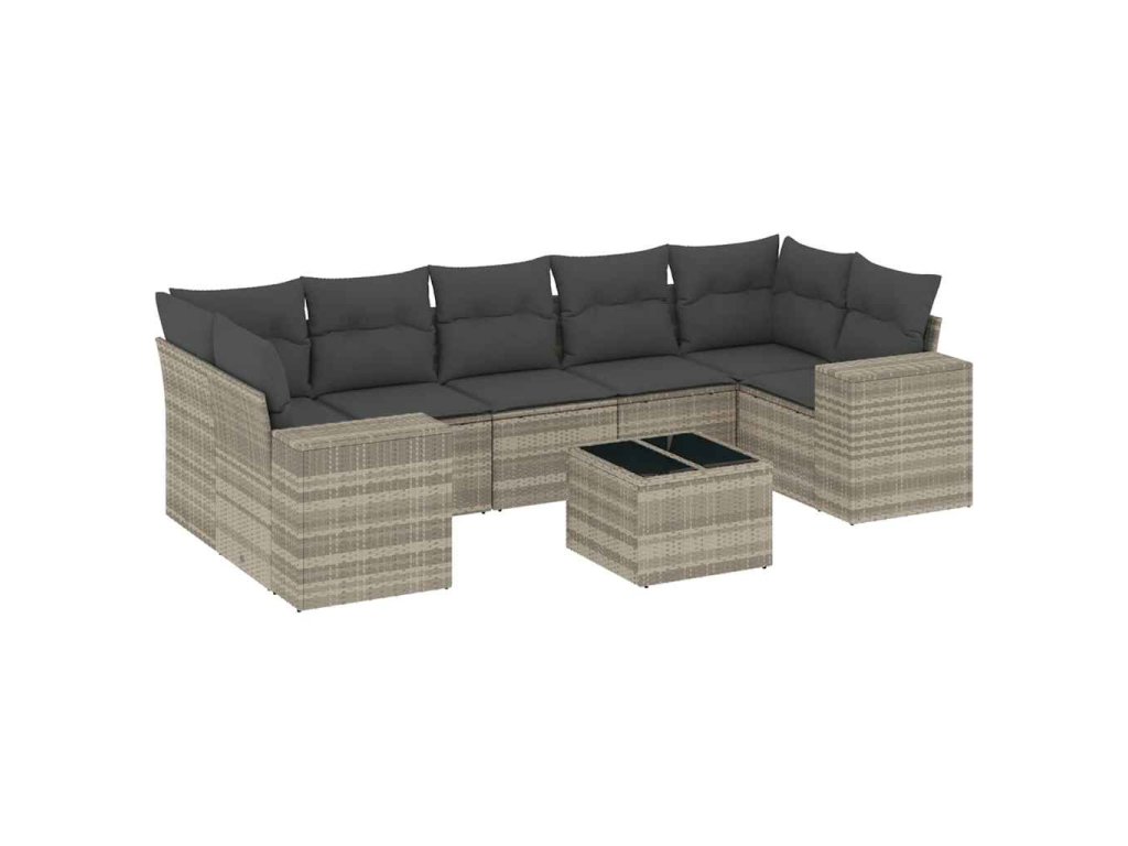 8dílná zahradní sedací souprava a podušky světle šedá polyratan 3254679