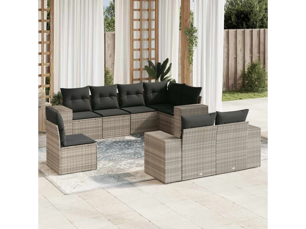 8dílná zahradní sedací souprava a podušky světle šedá polyratan 3255179