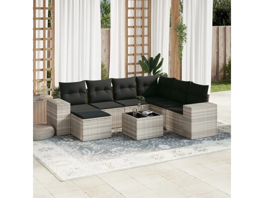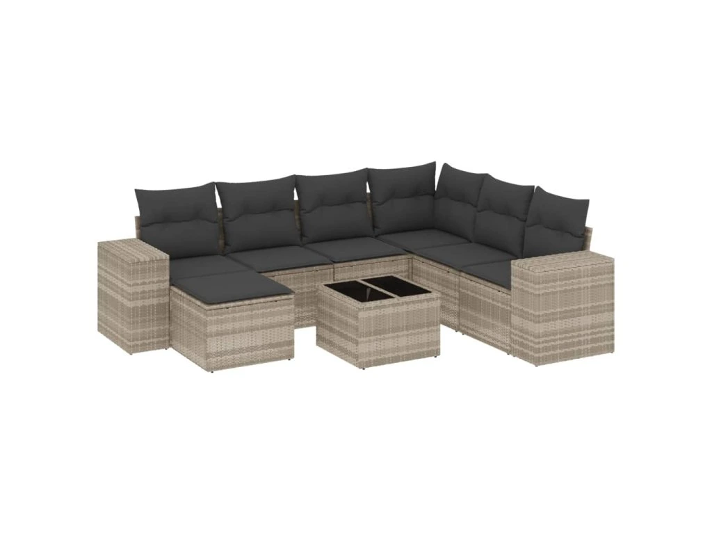 8dílná zahradní sedací souprava a podušky světle šedá polyratan 3255249