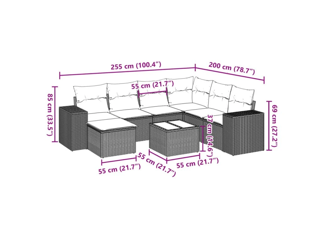Tato zahradní sedací souprava je dokonalým doplňkem vaší zahrady, terasy nebo dvorku a poskytne vám pohodlné a příjemné místo, kde si můžete povídat s rodinou a přáteli nebo jen tak odpočívat a užívat si pobyt venku.