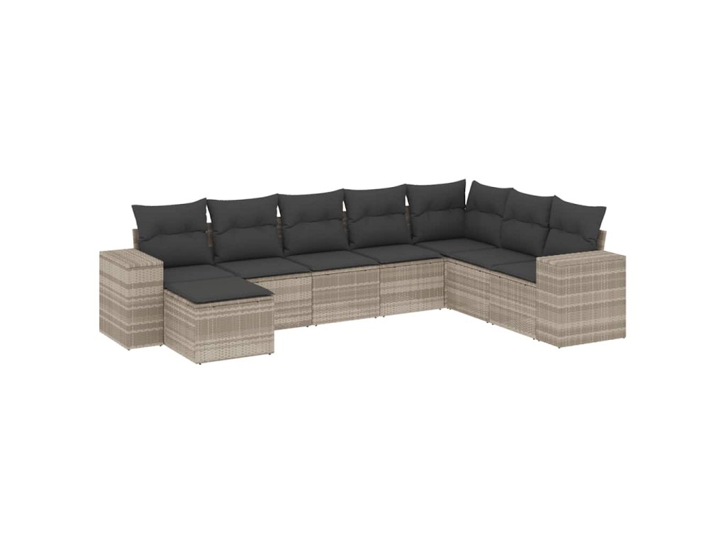 8dílná zahradní sedací souprava a podušky světle šedá polyratan 3255299