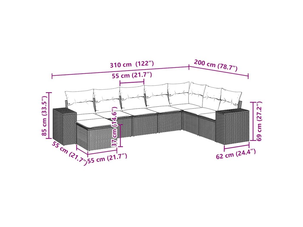 Tato zahradní sedací souprava je dokonalým doplňkem vaší zahrady, terasy nebo dvorku a poskytne vám pohodlné a příjemné místo, kde si můžete povídat s rodinou a přáteli nebo jen tak odpočívat a užívat si pobyt venku.