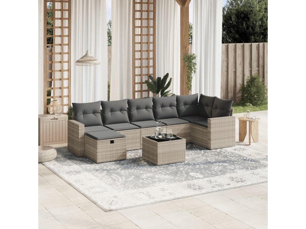 8dílná zahradní sedací souprava a podušky světle šedá polyratan 3263518