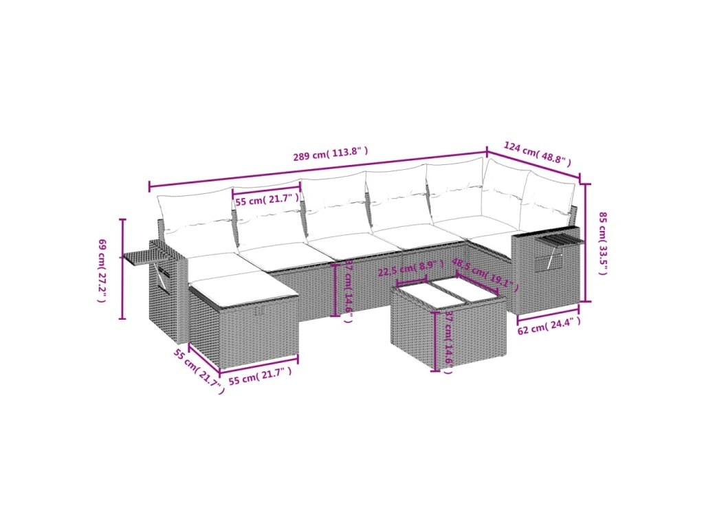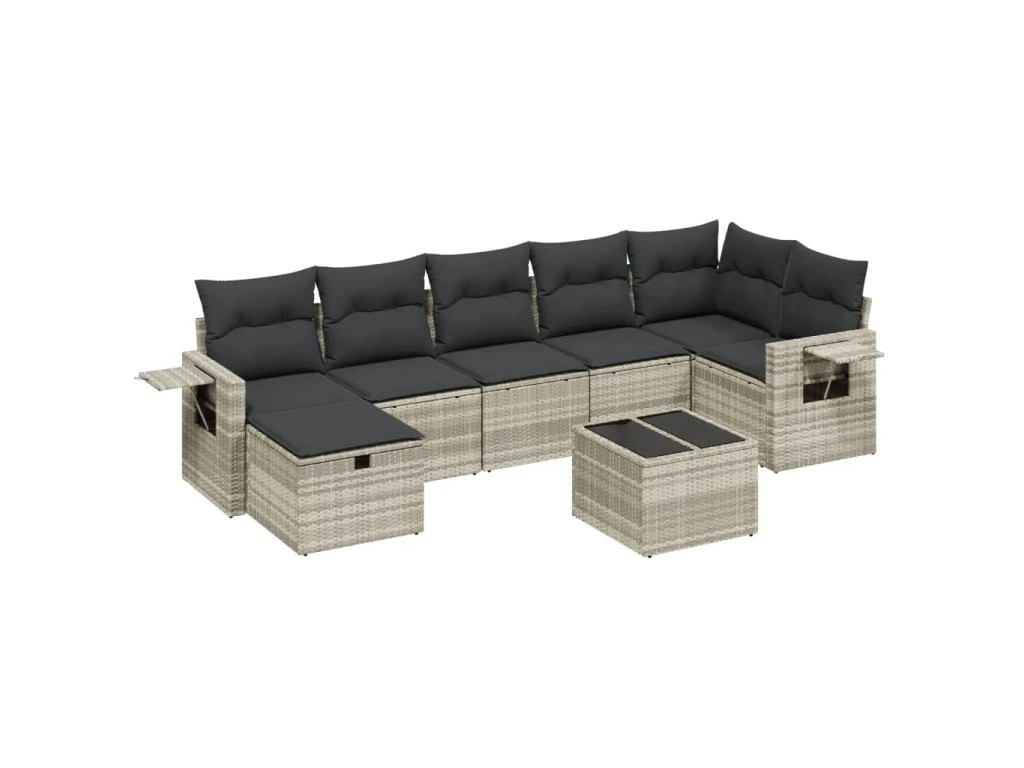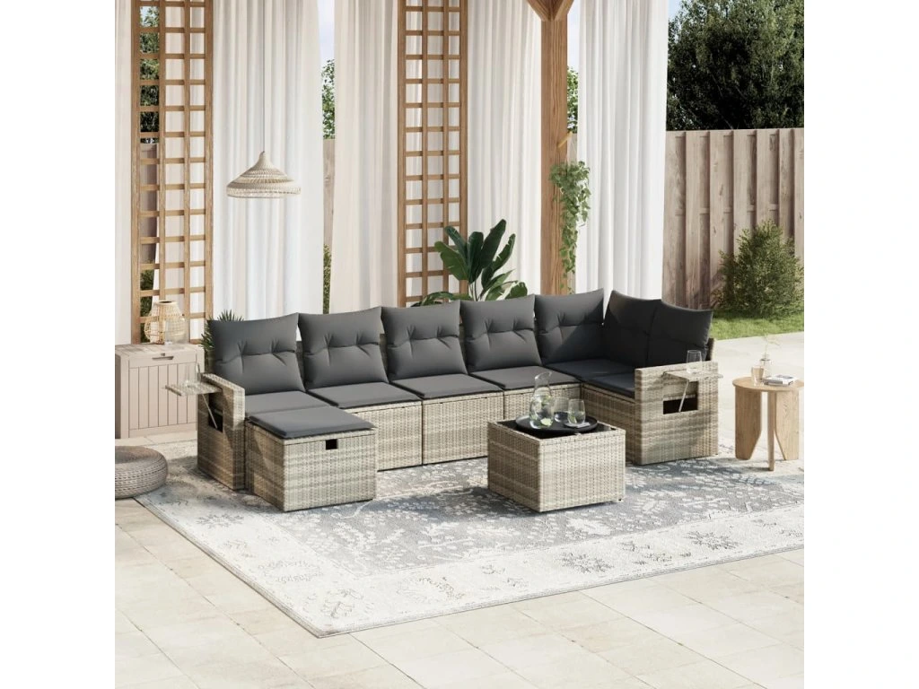8dílná zahradní sedací souprava a podušky světle šedá polyratan 3263828