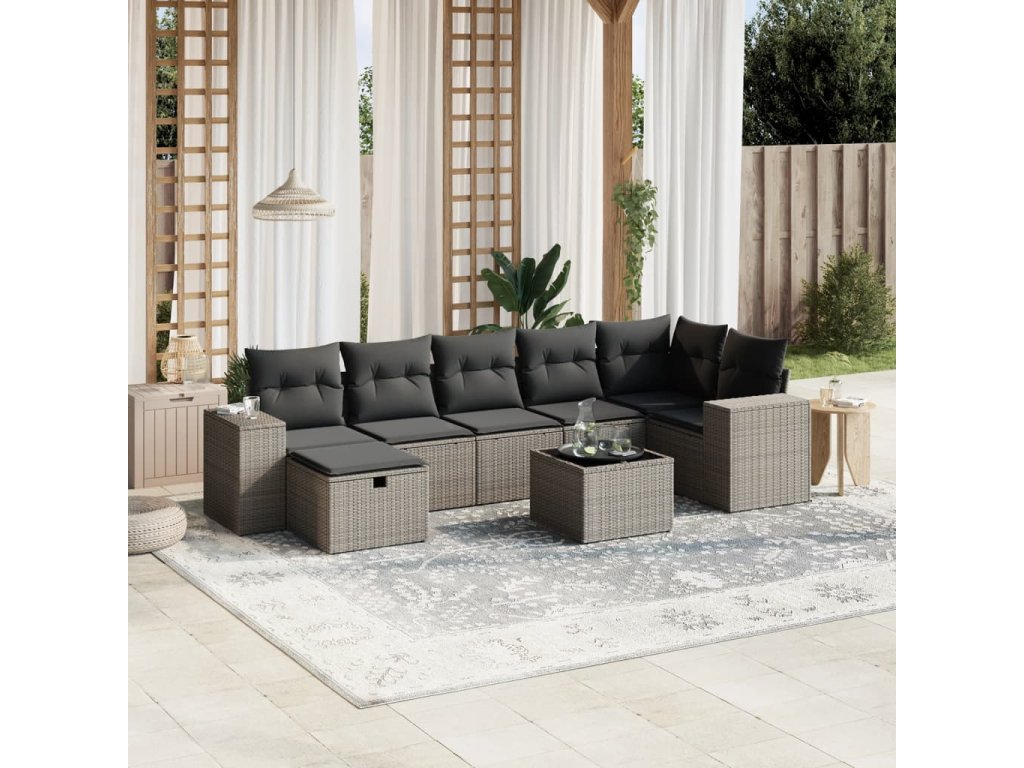 8dílná zahradní sedací souprava a podušky světle šedá polyratan 3264448