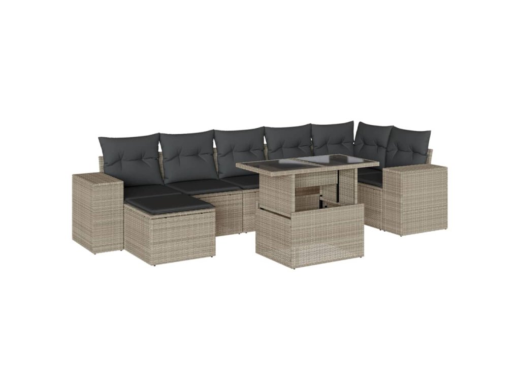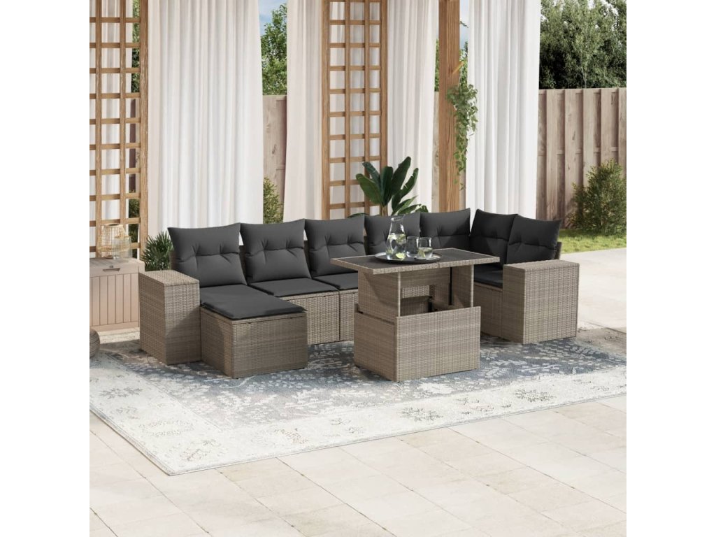 8dílná zahradní sedací souprava a podušky světle šedá polyratan 3269322