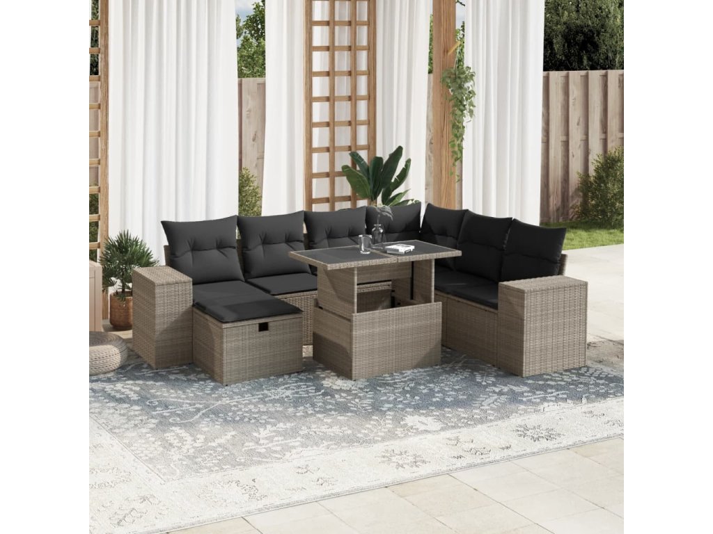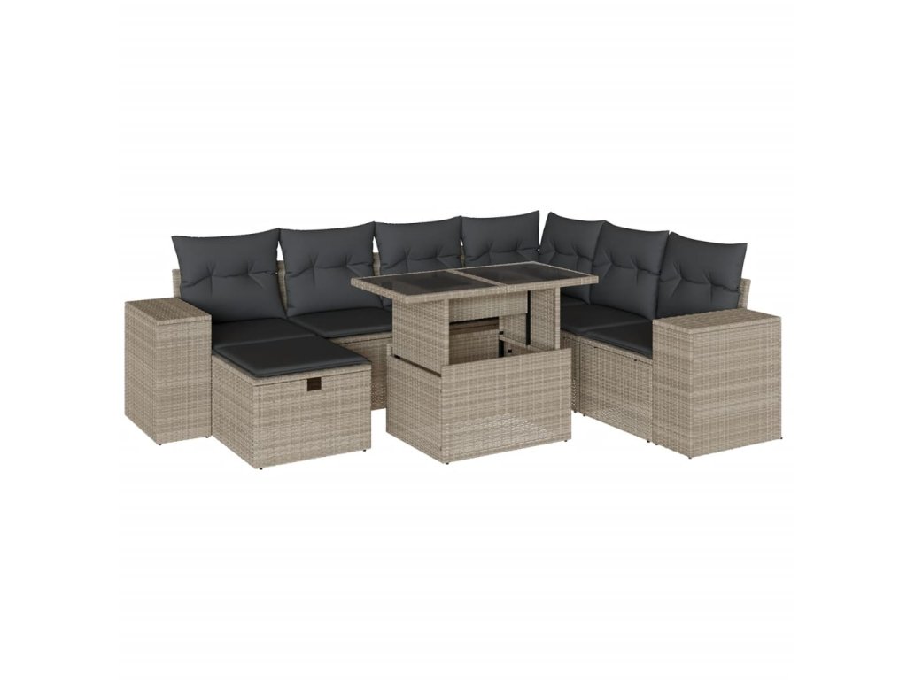 8dílná zahradní sedací souprava a podušky světle šedá polyratan 3275322