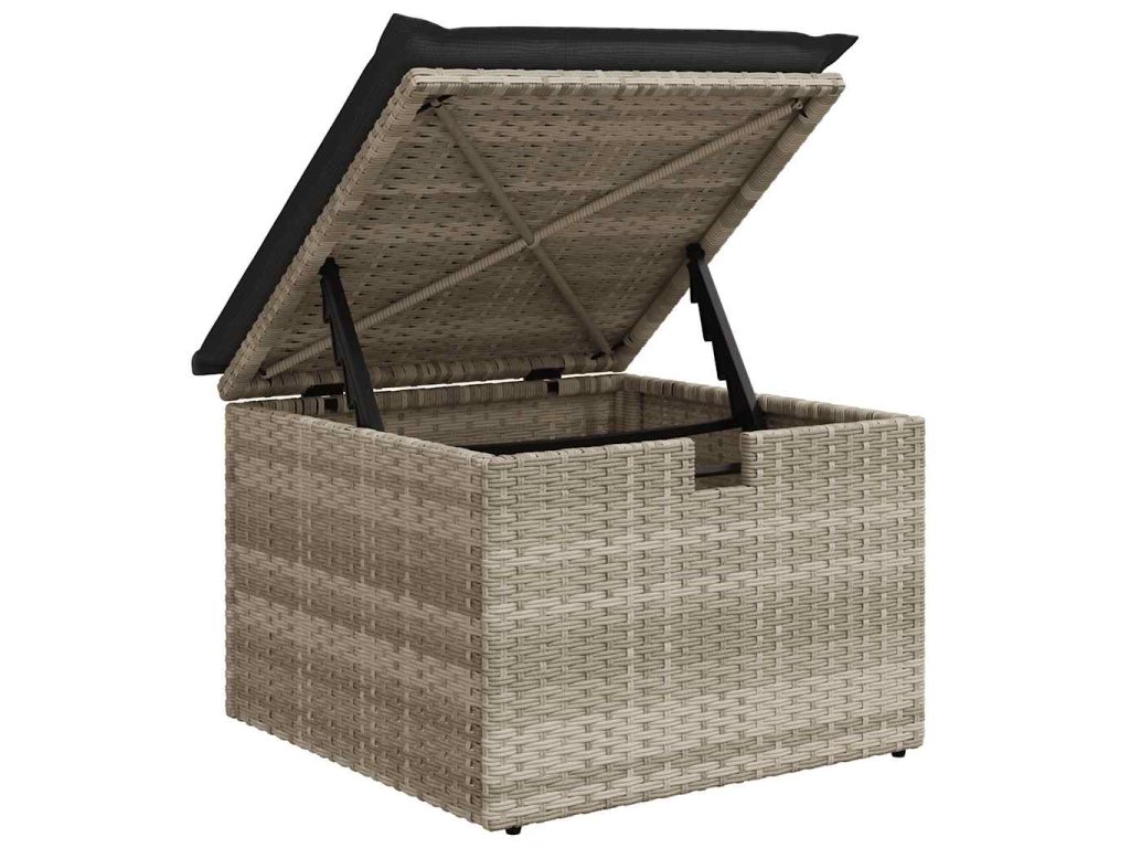 - Úložný prostor s voděodolným vakem: Zahradní nábytek má úložný prostor pod sedákem, který je opatřen voděodolnou vložkou a poslouží vám k ukládání podušek, hraček a dalších věcí. Vnitřní vak lze bezpečně připevnit k venkovnímu nábytku pomocí suchého zipu, což zaručí větší stabilitu.