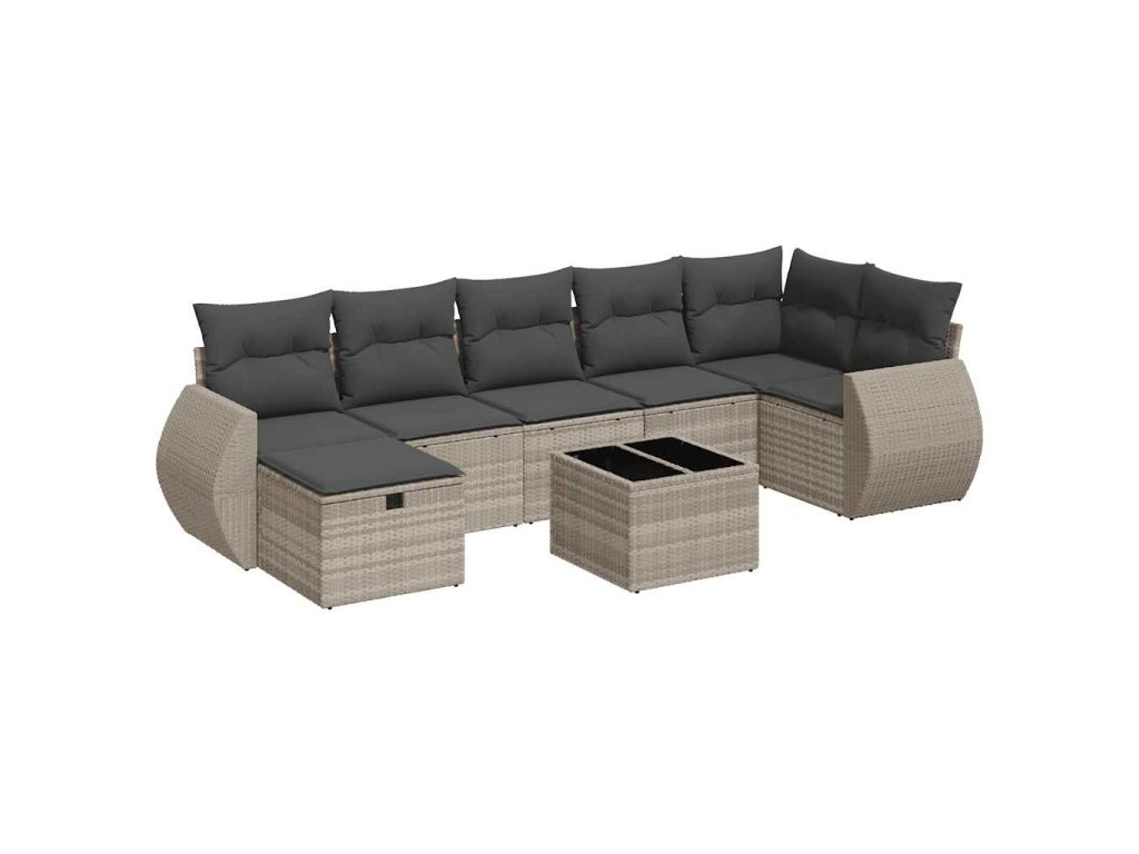 8dílná zahradní sedací souprava a podušky světle šedá polyratan 3325618