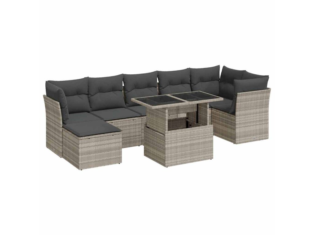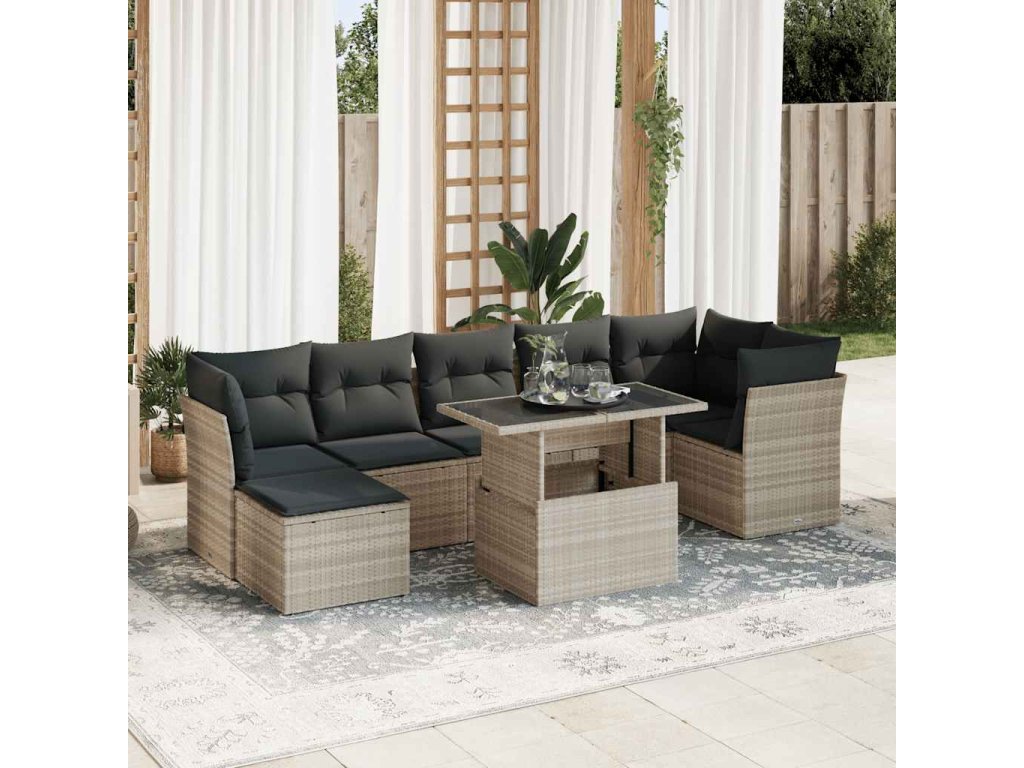 8dílná zahradní sedací souprava a podušky světle šedá polyratan 3326203