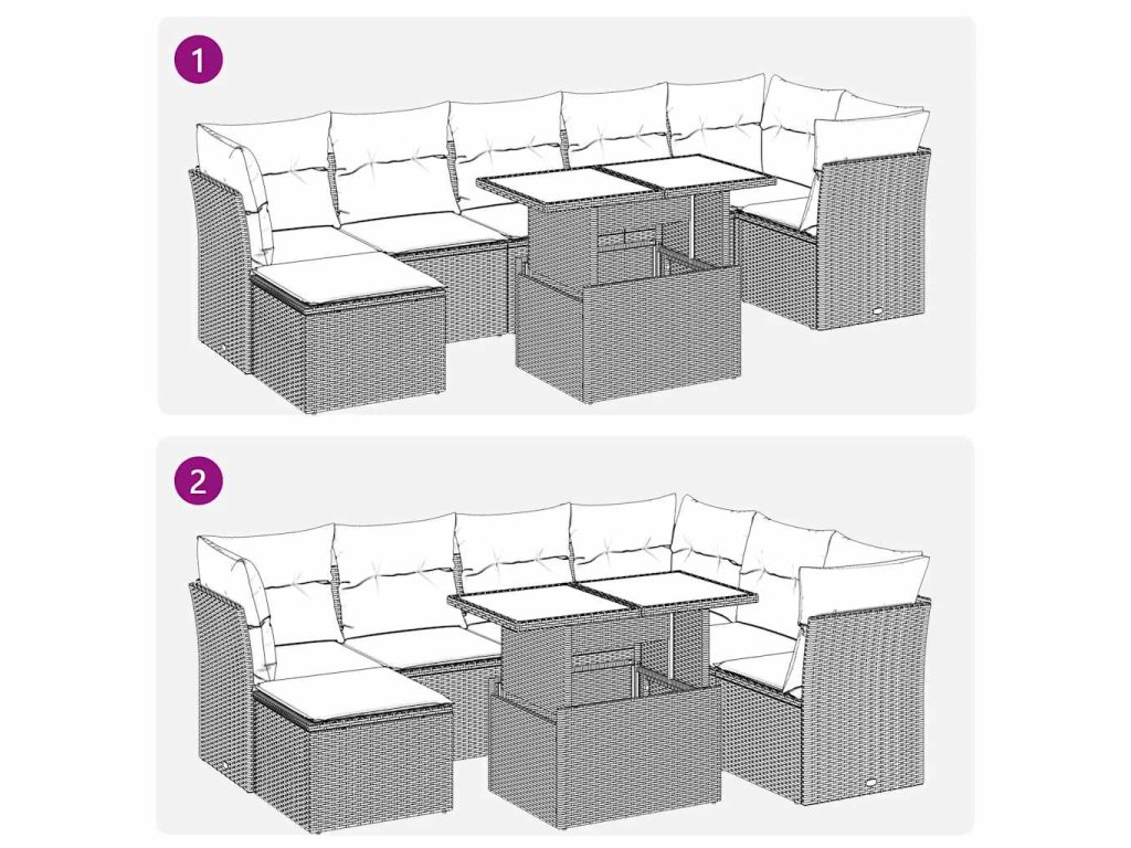 Tato zahradní sedací souprava je dokonalým doplňkem vaší zahrady, terasy nebo dvorku a poskytne vám pohodlné a příjemné místo, kde si můžete povídat s rodinou a přáteli nebo jen tak odpočívat a užívat si pobyt venku.