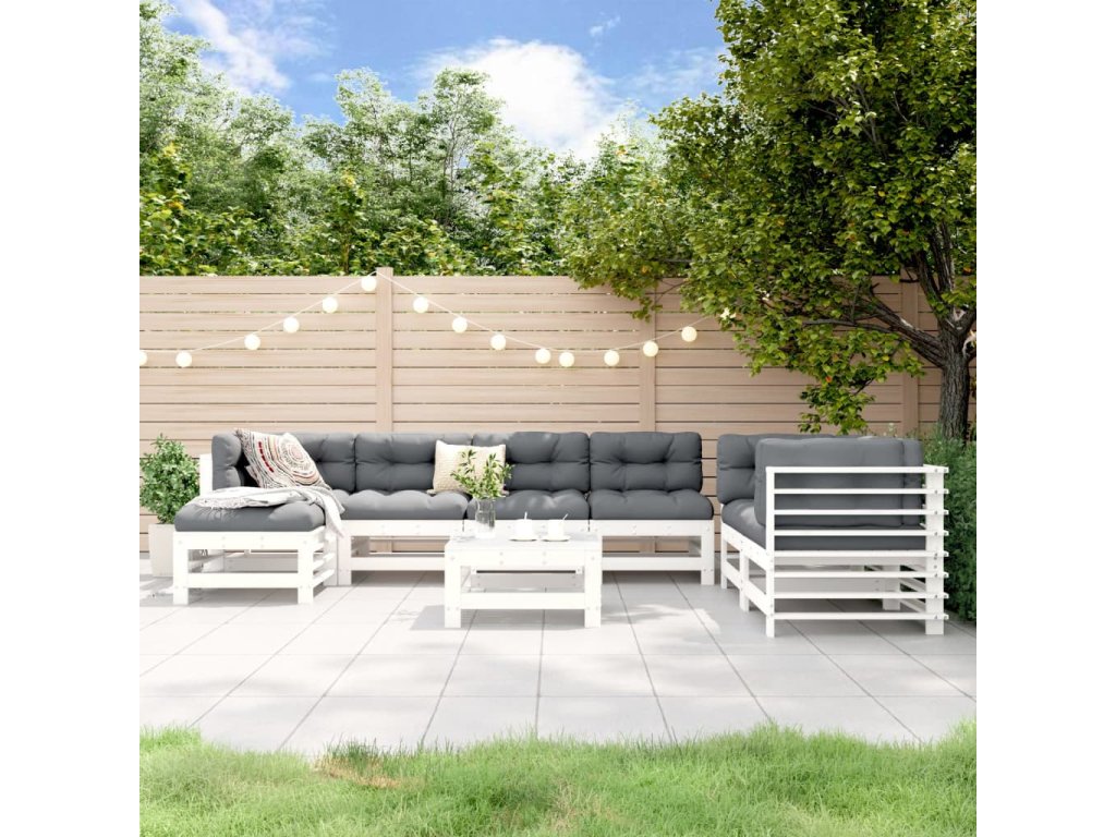 8dílná zahradní sedací souprava bílá masivní borovice 3186579