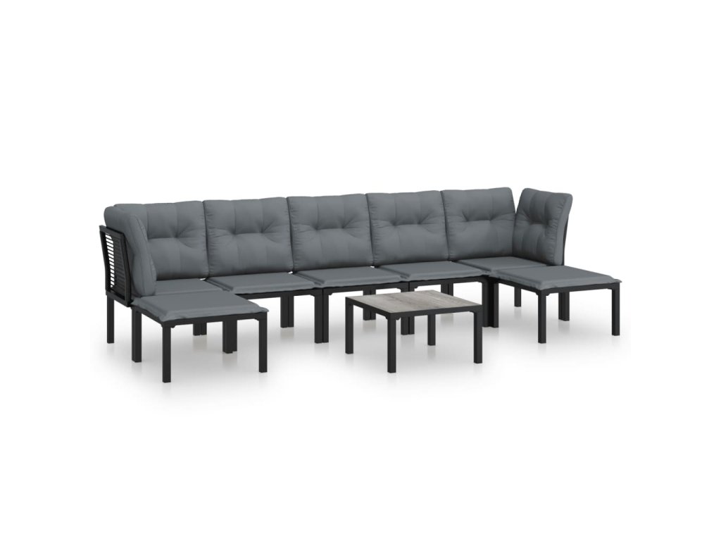 8dílná zahradní sedací souprava černá a šedá polyratan 3187765