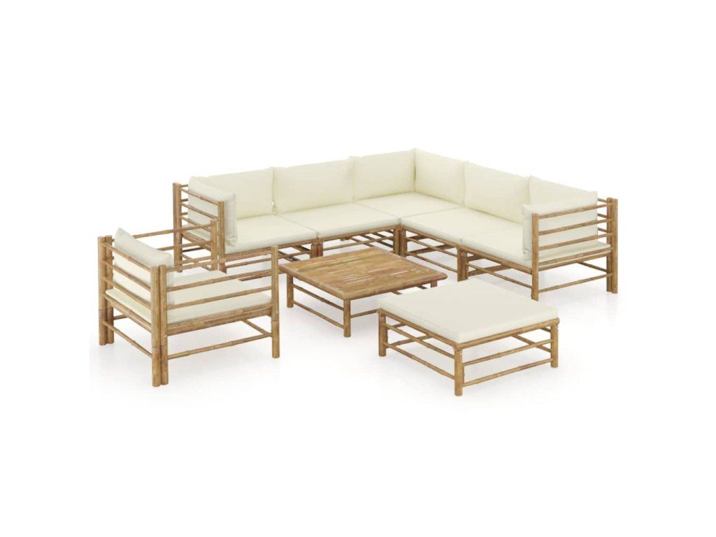 8dílná zahradní sedací souprava + krémově bílé podušky bambus 3058217