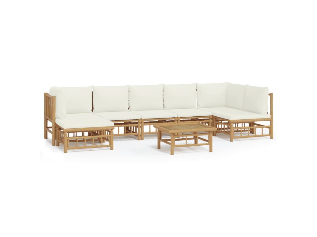 8dílná zahradní sedací souprava krémově bílé podušky bambus 3155206