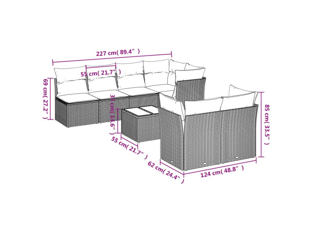 8dílná zahradní sedací souprava s poduškami béžová polyratan 3217299