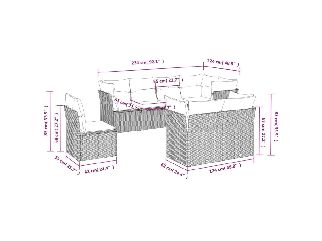 Tato zahradní sedací souprava je dokonalým doplňkem vaší zahrady, terasy nebo dvorku a poskytne vám pohodlné a příjemné místo, kde si můžete povídat s rodinou a přáteli nebo jen tak odpočívat a užívat si pobyt venku.