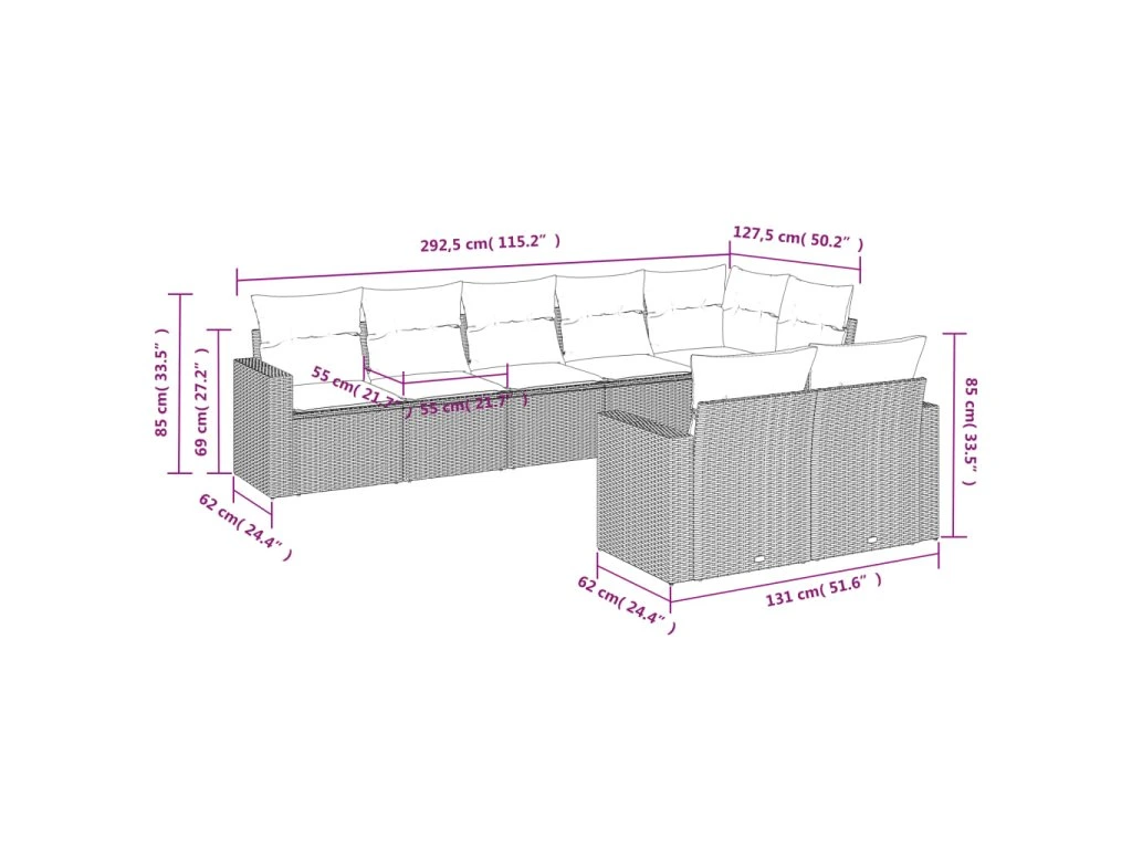 Tato zahradní sedací souprava je dokonalým doplňkem vaší zahrady, terasy nebo dvorku a poskytne vám pohodlné a příjemné místo, kde si můžete povídat s rodinou a přáteli nebo jen tak odpočívat a užívat si pobyt venku.