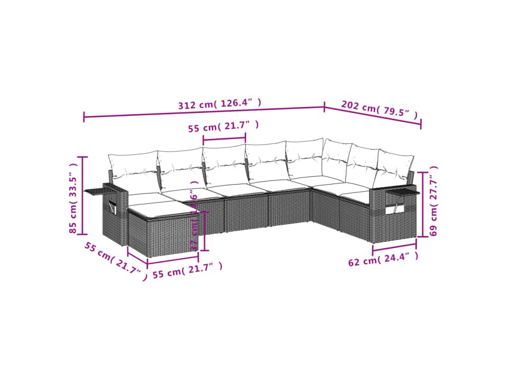 - Modulární design: Tato sada venkovního nábytku se vyznačuje modulární konstrukcí, je tedy zcela flexibilní a lze ji snadno přemisťovat, takže si můžete uspořádat venkovní nábytek dle vašich potřeb.