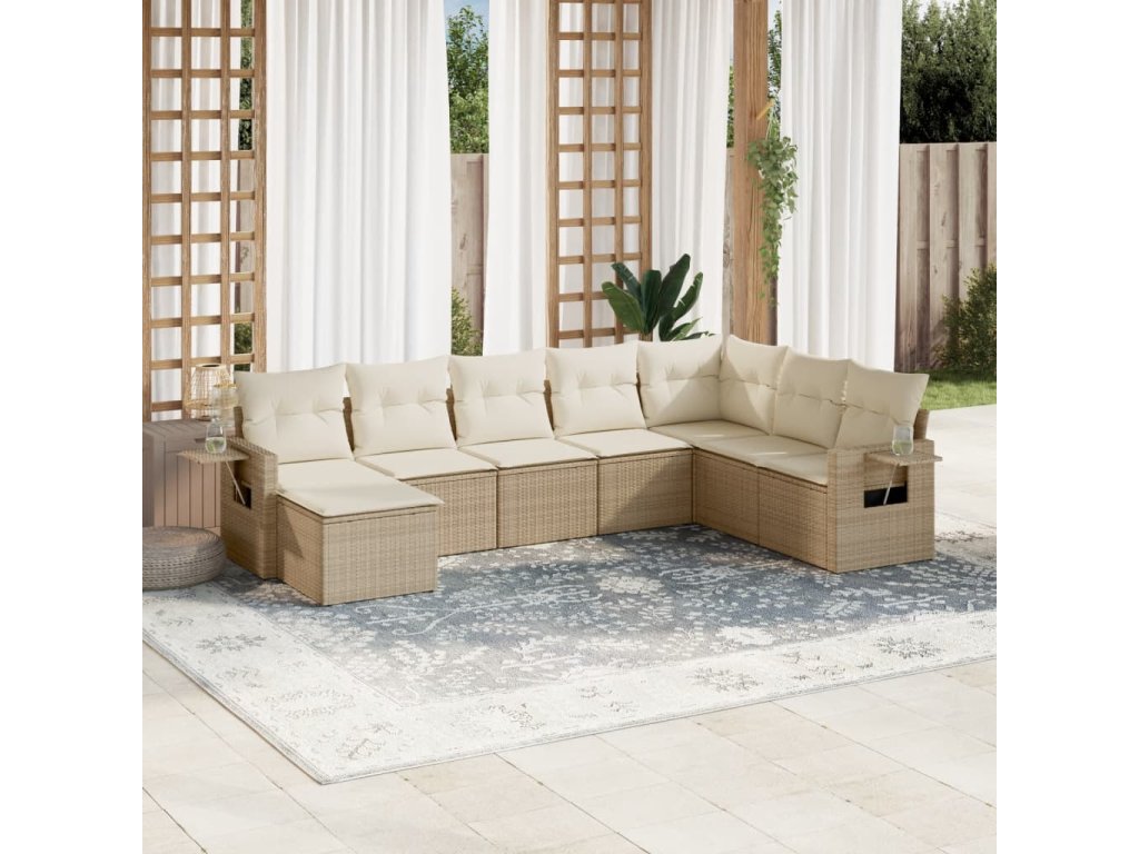 8dílná zahradní sedací souprava s poduškami béžová polyratan 3220557